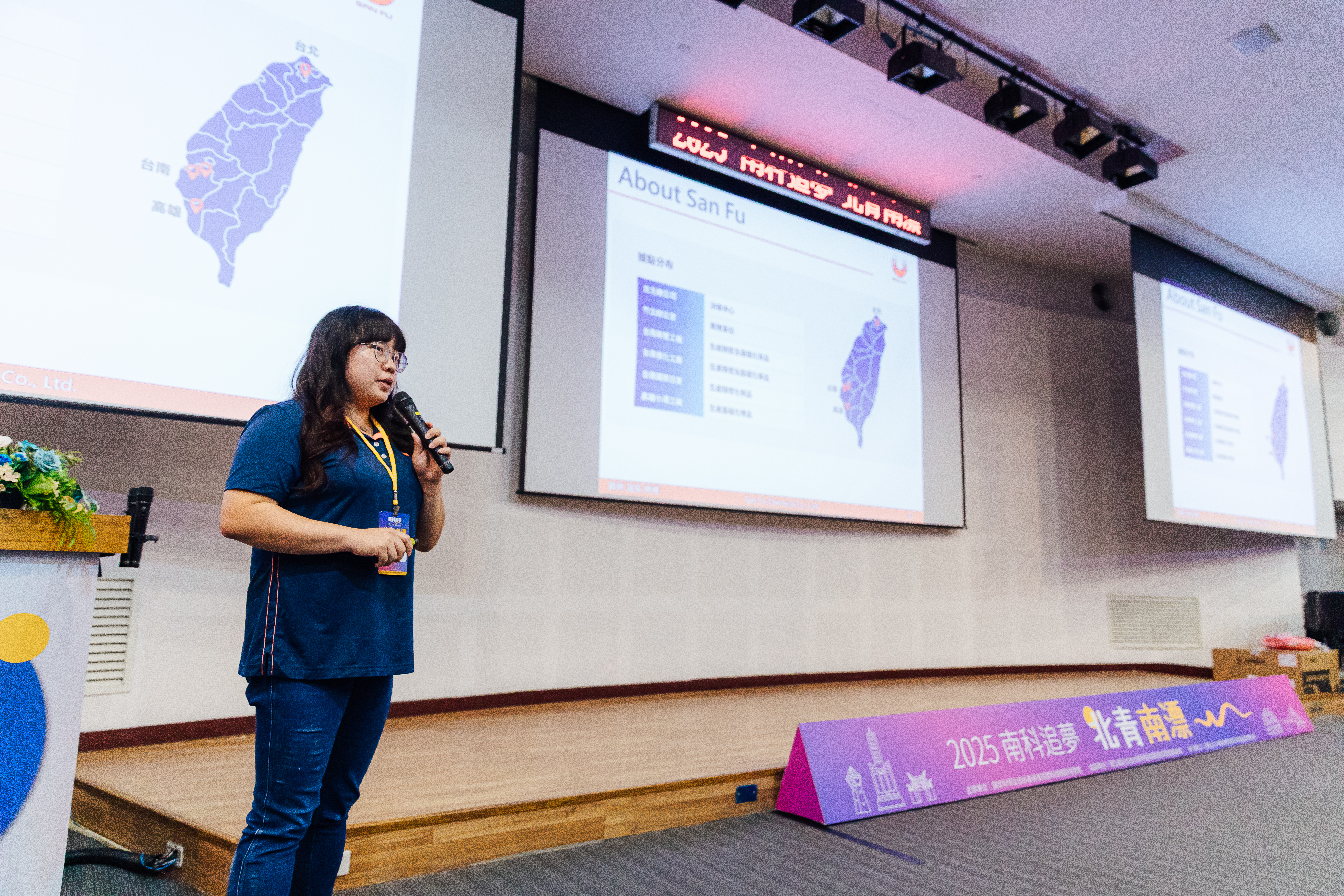 隨後,人資沈經理分享三福化工的企業文化、員工福利與發展藍圖,說明公司致力打造友善、穩定且充滿成長機會的職場環境,展現企業在永續經營與人才培育上的長期承諾。