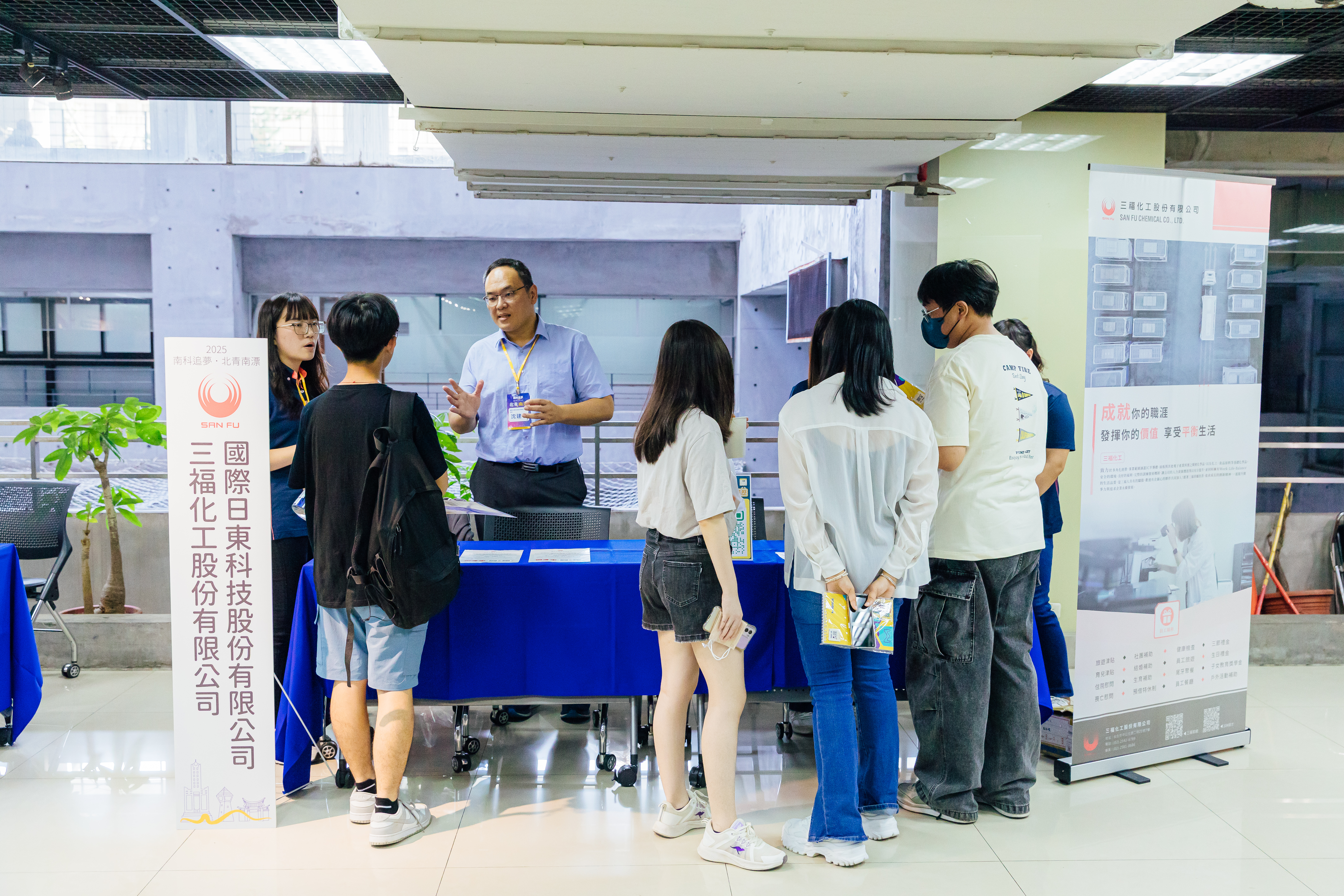 此外,三福化工亦於活動現場設置攤位,讓學生能與人資團隊面對面交流,深入了解公司產業特色與工作環境,並可現場填寫履歷,進行初步媒合。